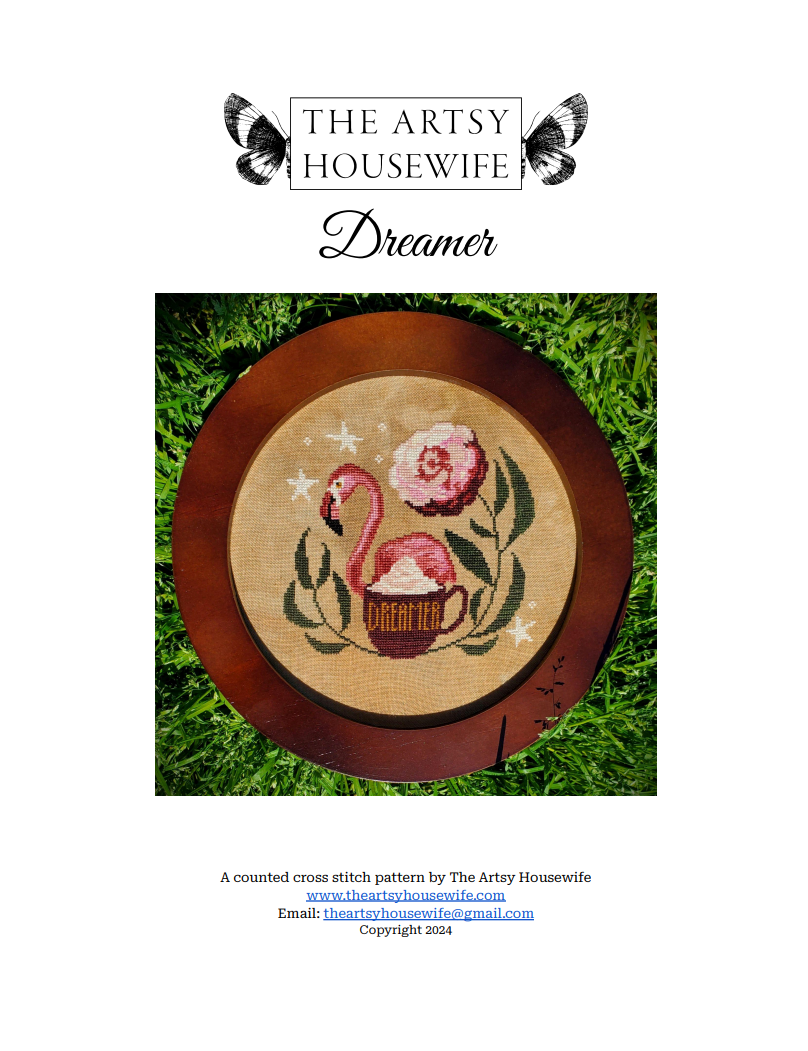 This listing is for a PDf (Pattern Keeper and Markup friendly) pattern of Dreamer, a counted cross stitch pattern by The Artsy Housewife.