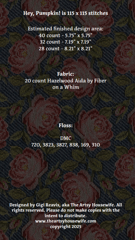 This listing is for a PDf (Pattern Keeper and Markup friendly) of Hey, Pumpkin!, a counted cross stitch pattern by The Artsy Housewife.