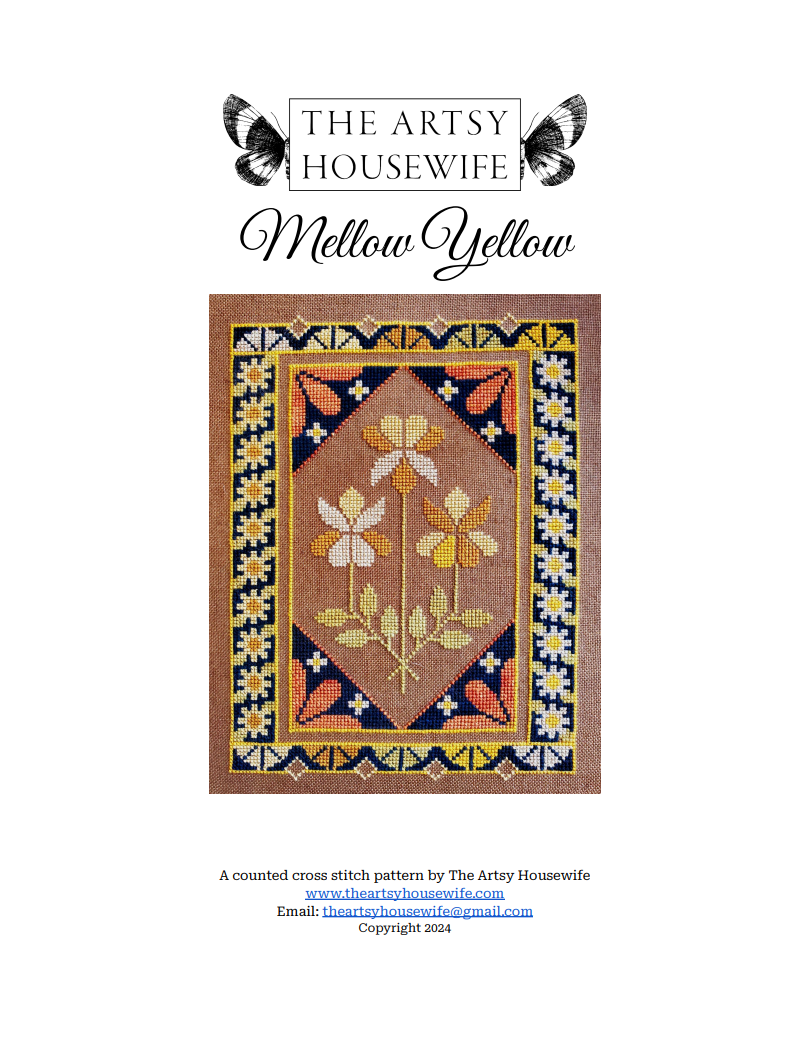 This listing is for a PDf (Pattern Keeper and Markup friendly) pattern of Mellow Yellow, a counted cross stitch pattern by The Artsy Housewife.