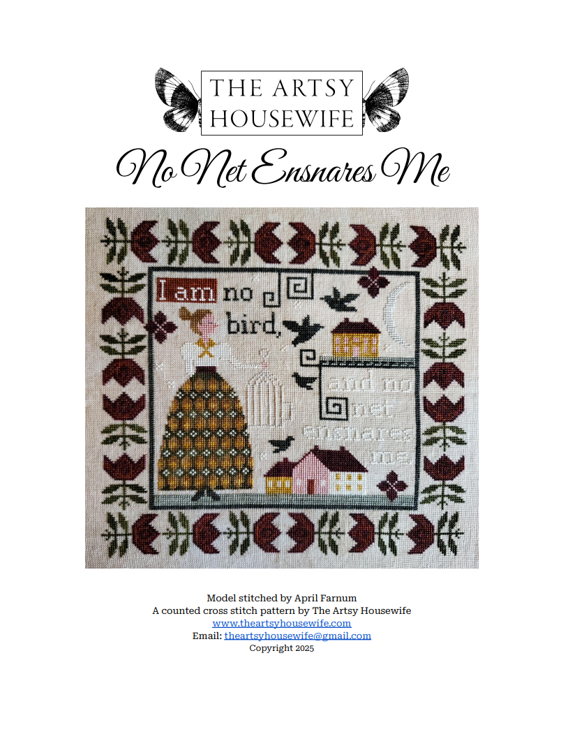 This listing is for a PDf (Pattern Keeper and Markup friendly) version of No Net Ensnares Me, a counted cross stitch pattern by The Artsy Housewife.